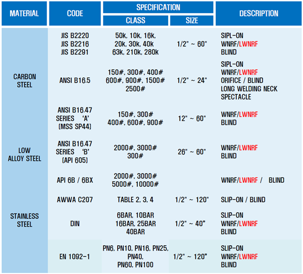 다양한 종류의 플랜지를 생산, 공급하고 있습니다.