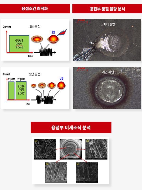 자동차용 소재에 대한 최적의 용접 및 접합 조건 도출과 관련된
